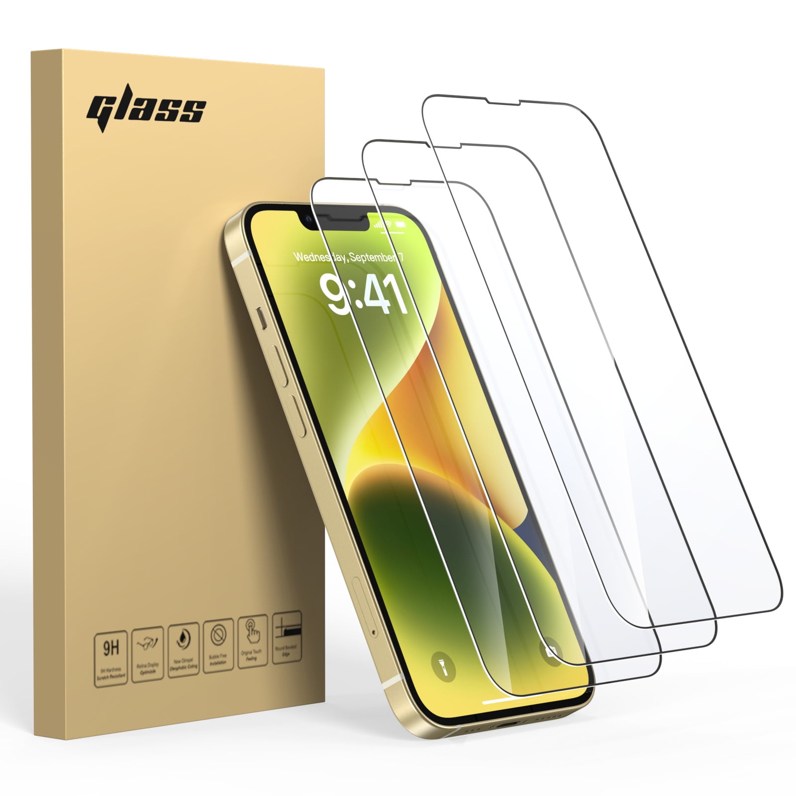 TOPVISION 3-Pack Enhanced Screen Protector for iPhone 13/14/13 Pro(6.1″), 9H Hardness, Shatter Protection, HD Clear Tempered Glass, Full Coverage Easy, Case Friendly
